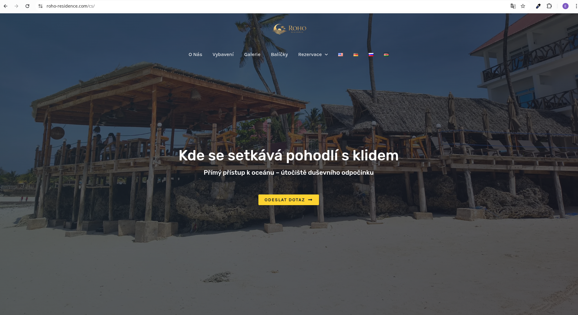 Vícejazyčný mezinárodní hotelový web v Nungwi (Zanzibar) s integrovaným rezervačním systémem pro rezervaci pokojů a služeb. Použijte náš kód „CARASTAY“ a získejte 8% slevu na každou rezervaci pokoje.