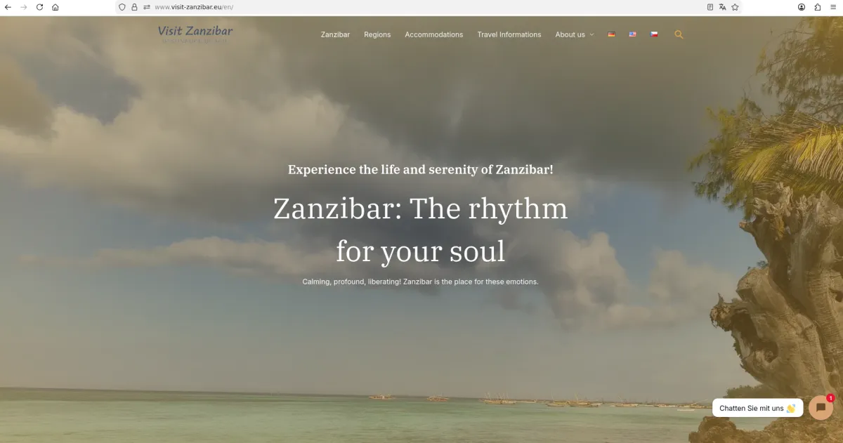 Vícejazyčný celoevropský informační portál pro prázdninový ostrov Zanzibar s cestovními informacemi a kupóny na ubytování a služby.